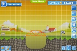 The teacher needs to prepare for this simulation by experiencing the simulation before this session. The teacher demonstrates how to design a bridge for the first three levels (Possible solutions for the first three levels are included below). Once the students are assembled around the teacher’s computer screen, the teacher demonstrates how bridges are built. At the teacher's discretion, the students may offer suggestions to the bridge’s design. Some basic procedures include: